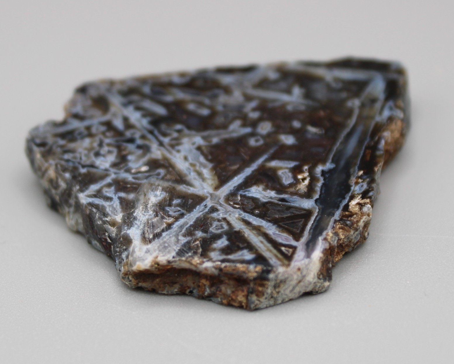 This translucent agate has brown-rimmed, highly patterned tube structures that can be seen rising through the stone.