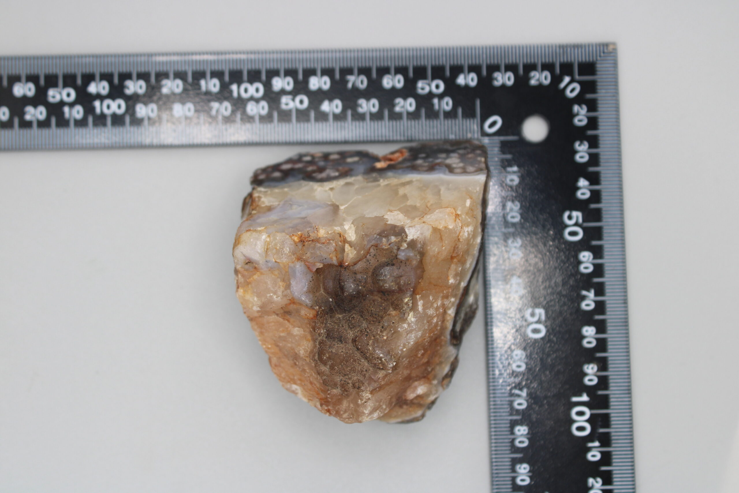 This translucent agate has brown-rimmed, highly patterned tube structures that can be seen rising through the stone.