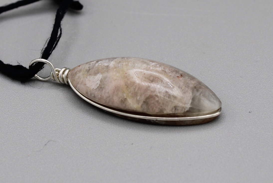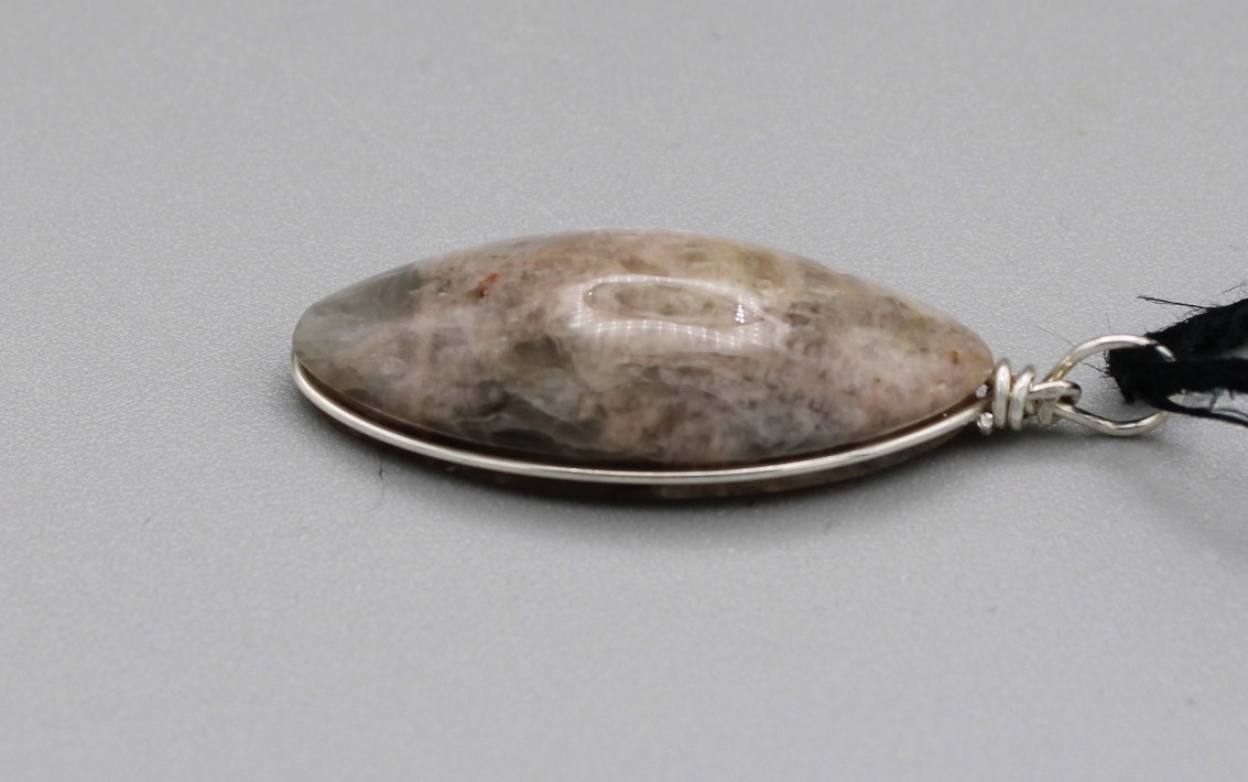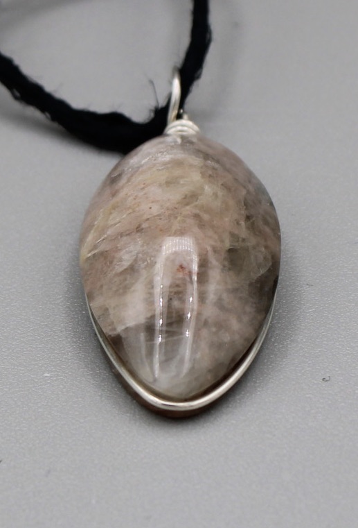 Black Moonstone Pendant with a custom Sterling silver wrap and eyelet.