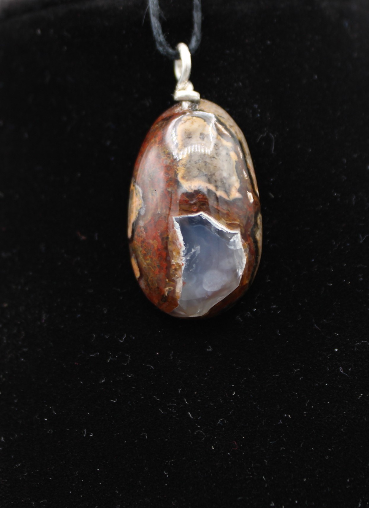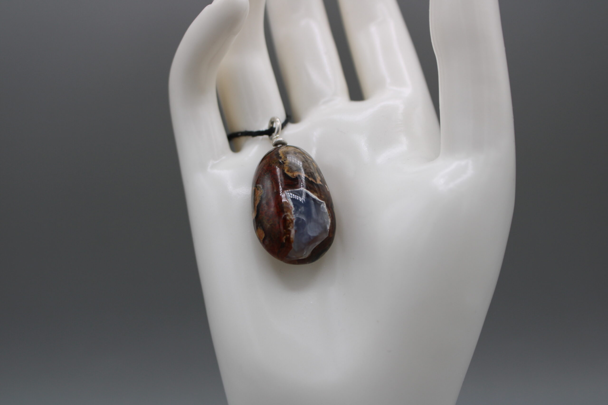Black Sea Agate pendant with a Sterling silver eyelet.