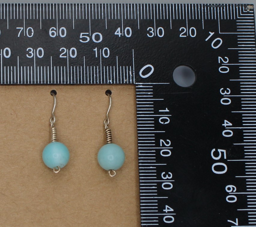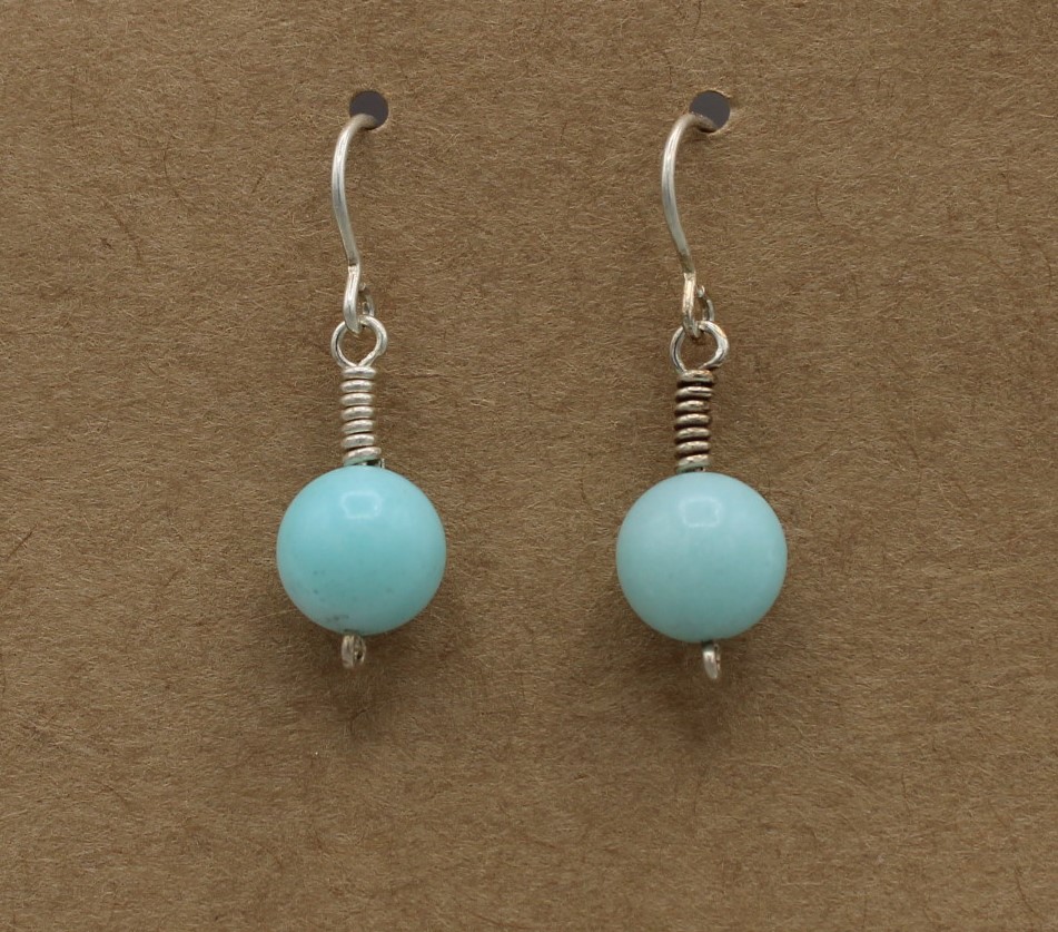 Blue Aventurine bead hangs from simple hand-wrapped Sterling Silver (.925) clasp, with Sterling Silver hook and clear plastic backing.