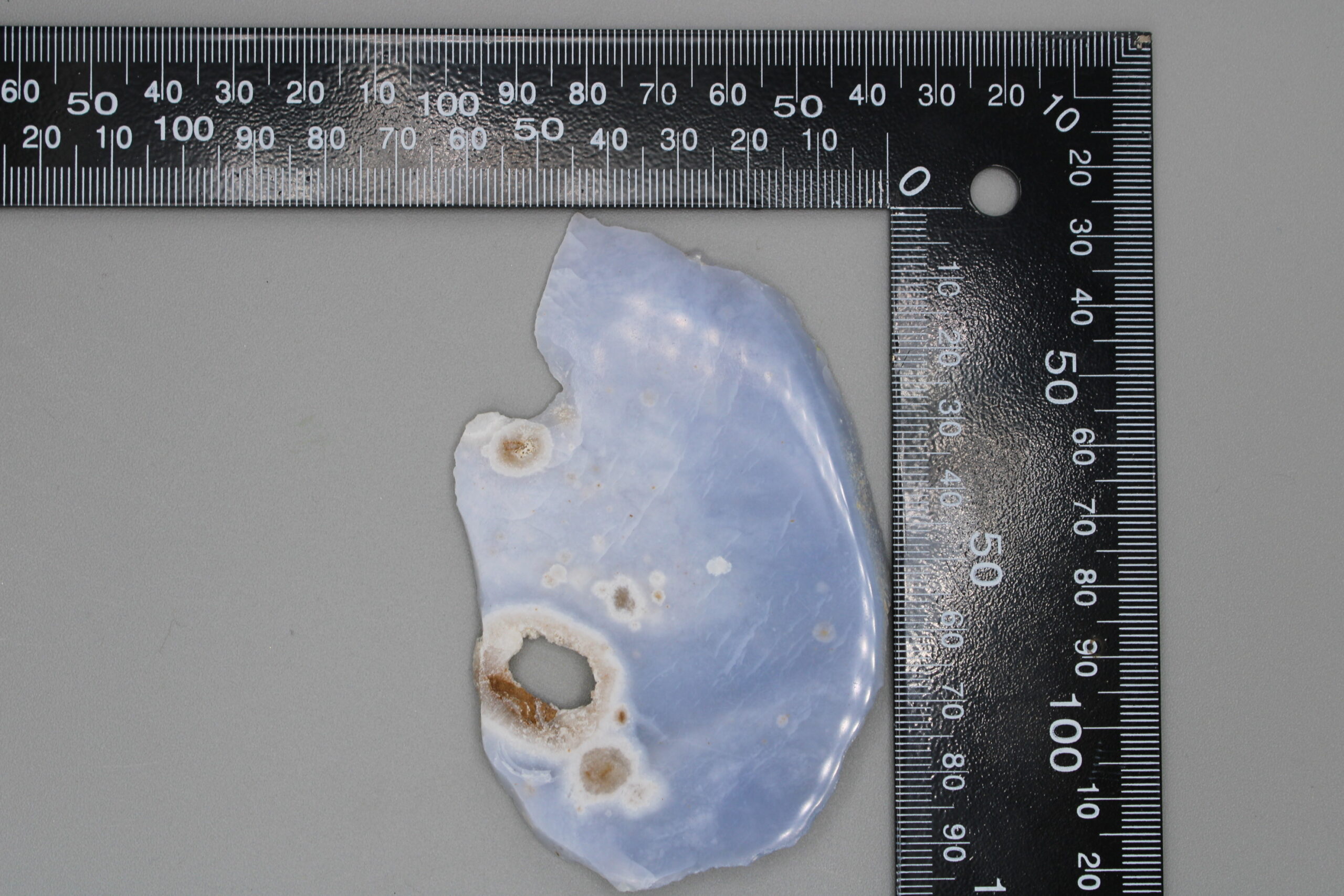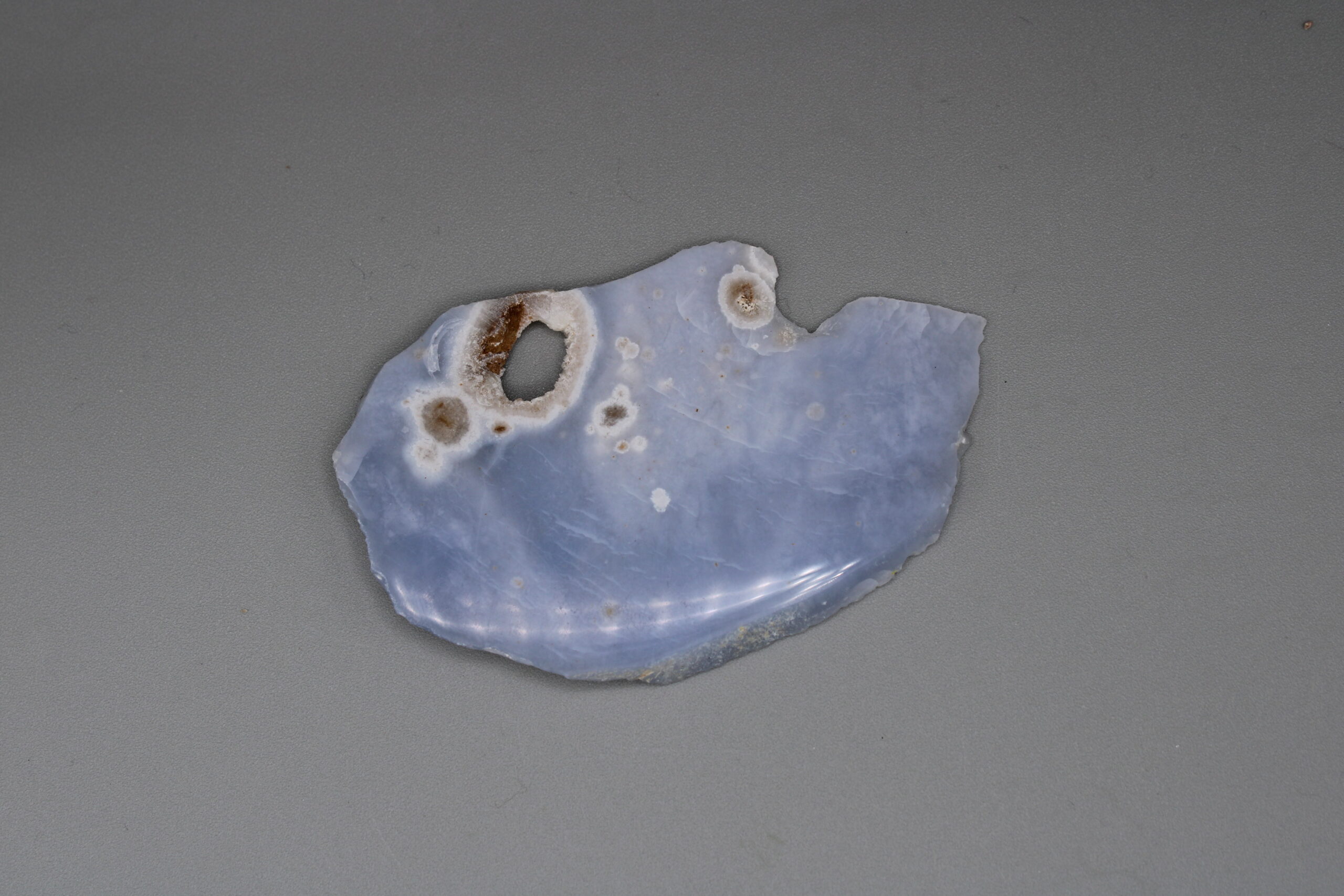 Blue Chalcedony Slab. Polished on one side.