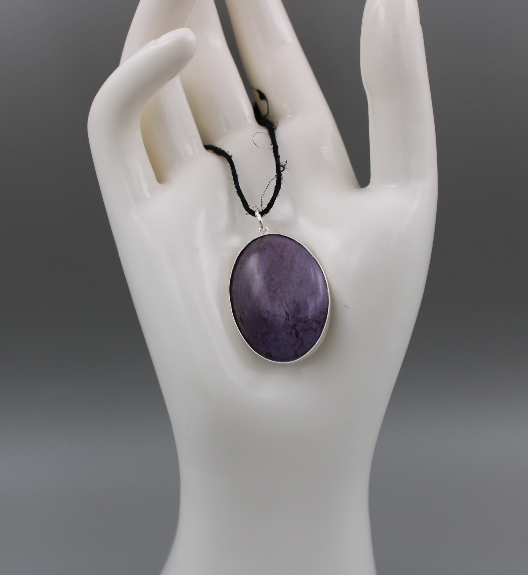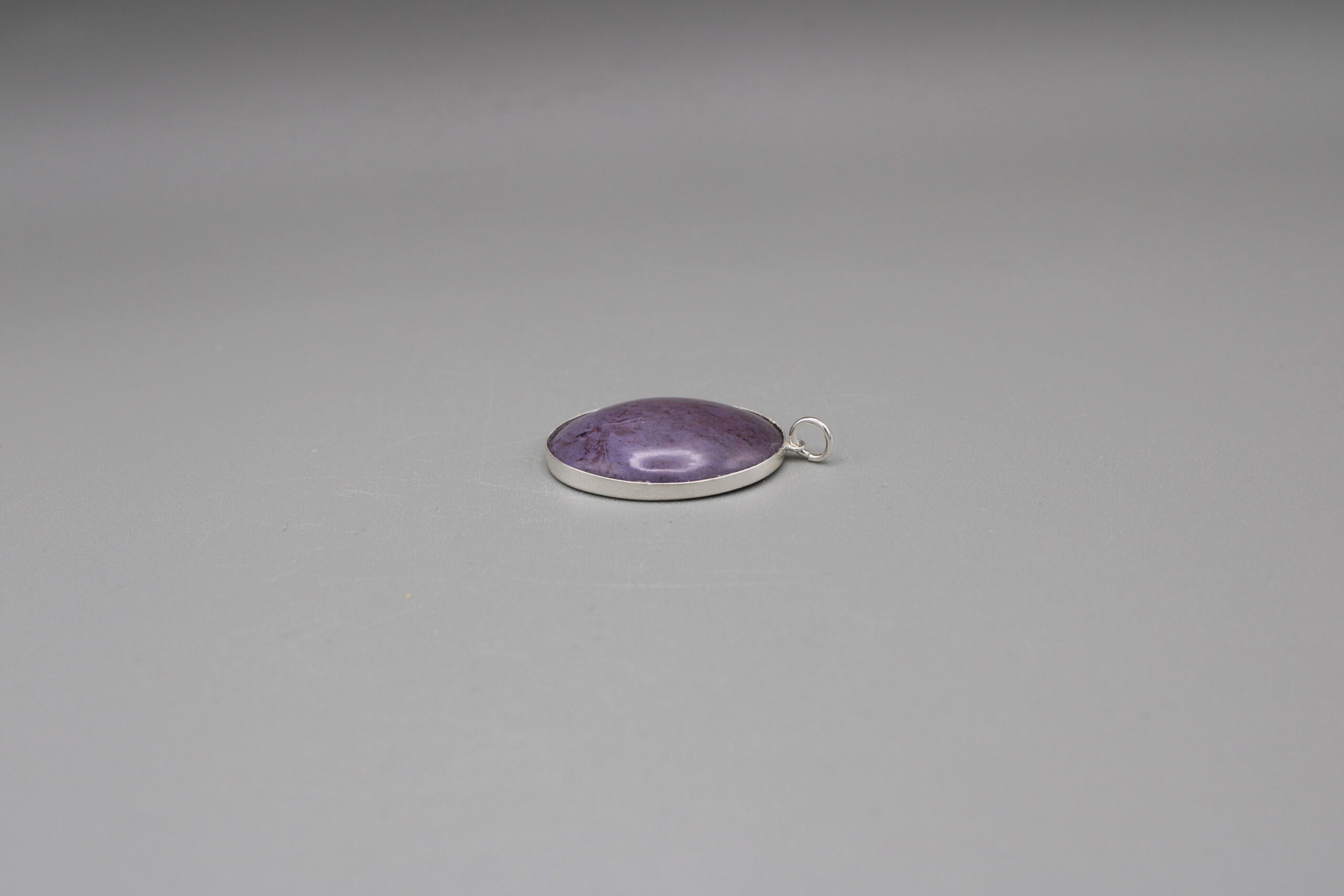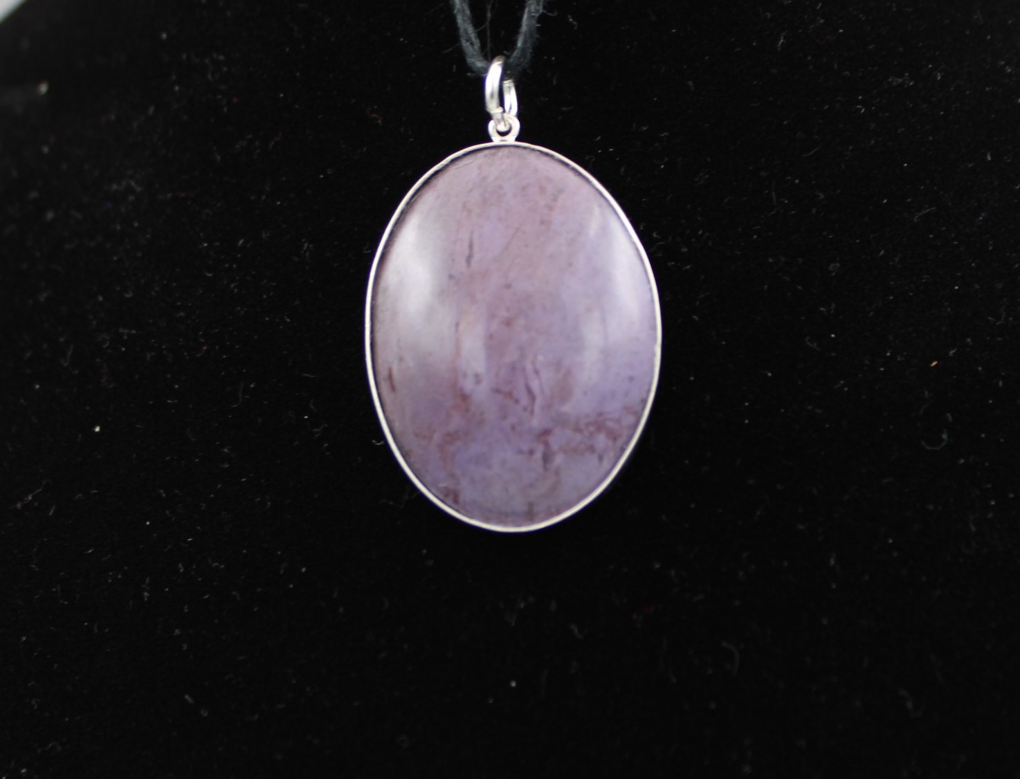 Lavender Jade, aka Turkiyenite cabochon set in a Sterling silver bezel.