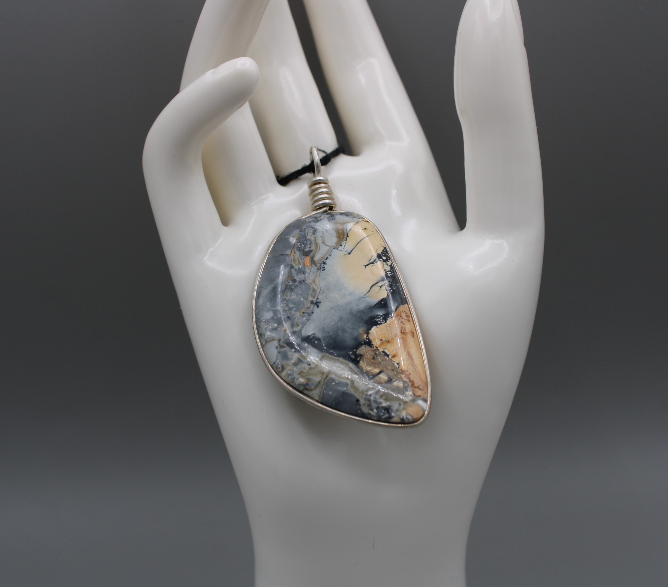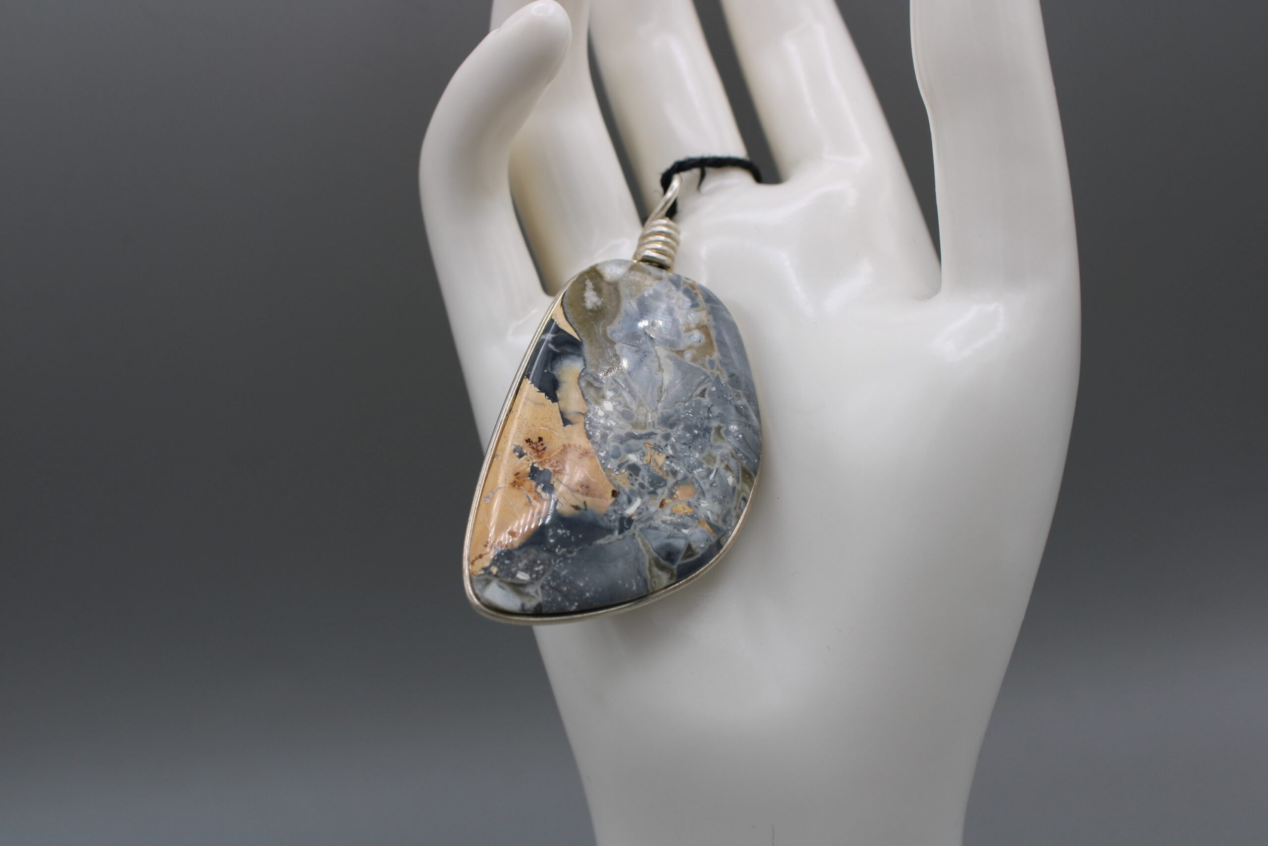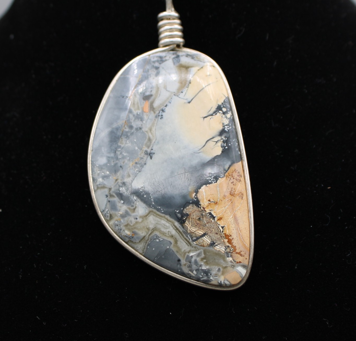 Maligano Jasper Pendant with a Sterling Silver wrap and eyelet.