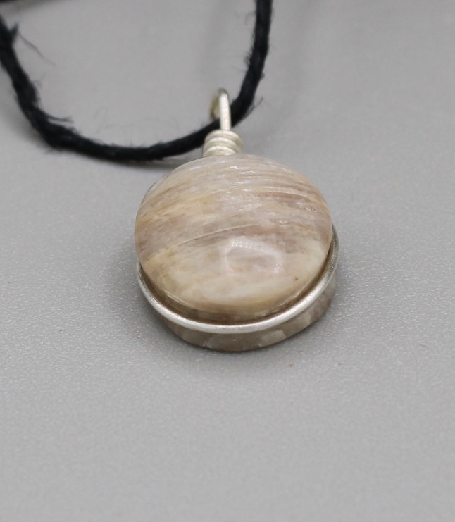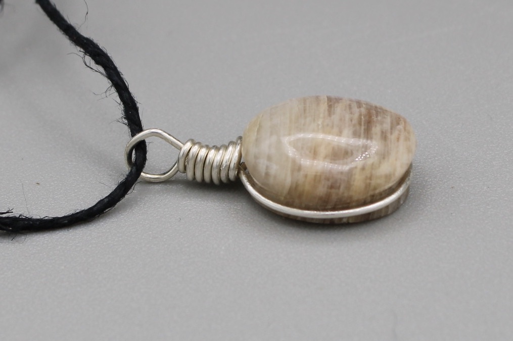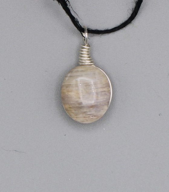 Moonstone Pendant with a custom Sterling silver wrap and eyelet.