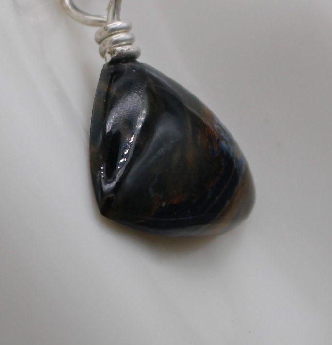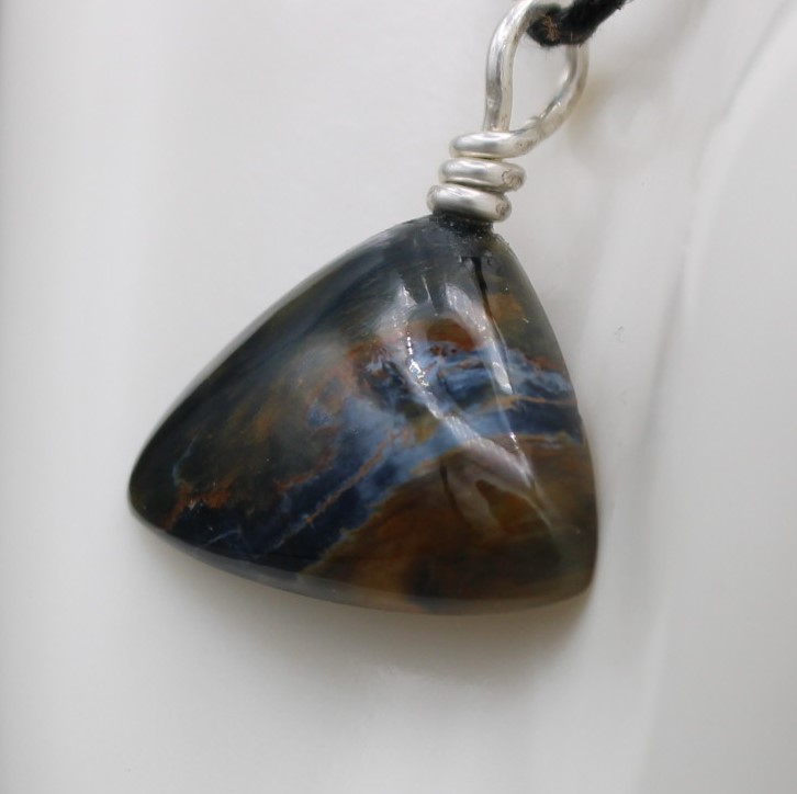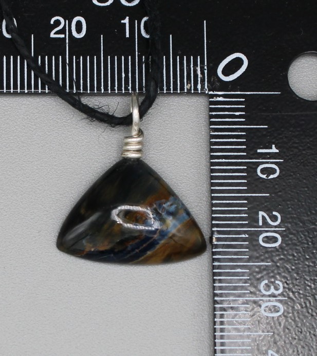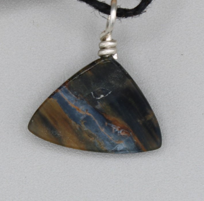 Triangular Pietersite pendant with sterling silver eyelet.