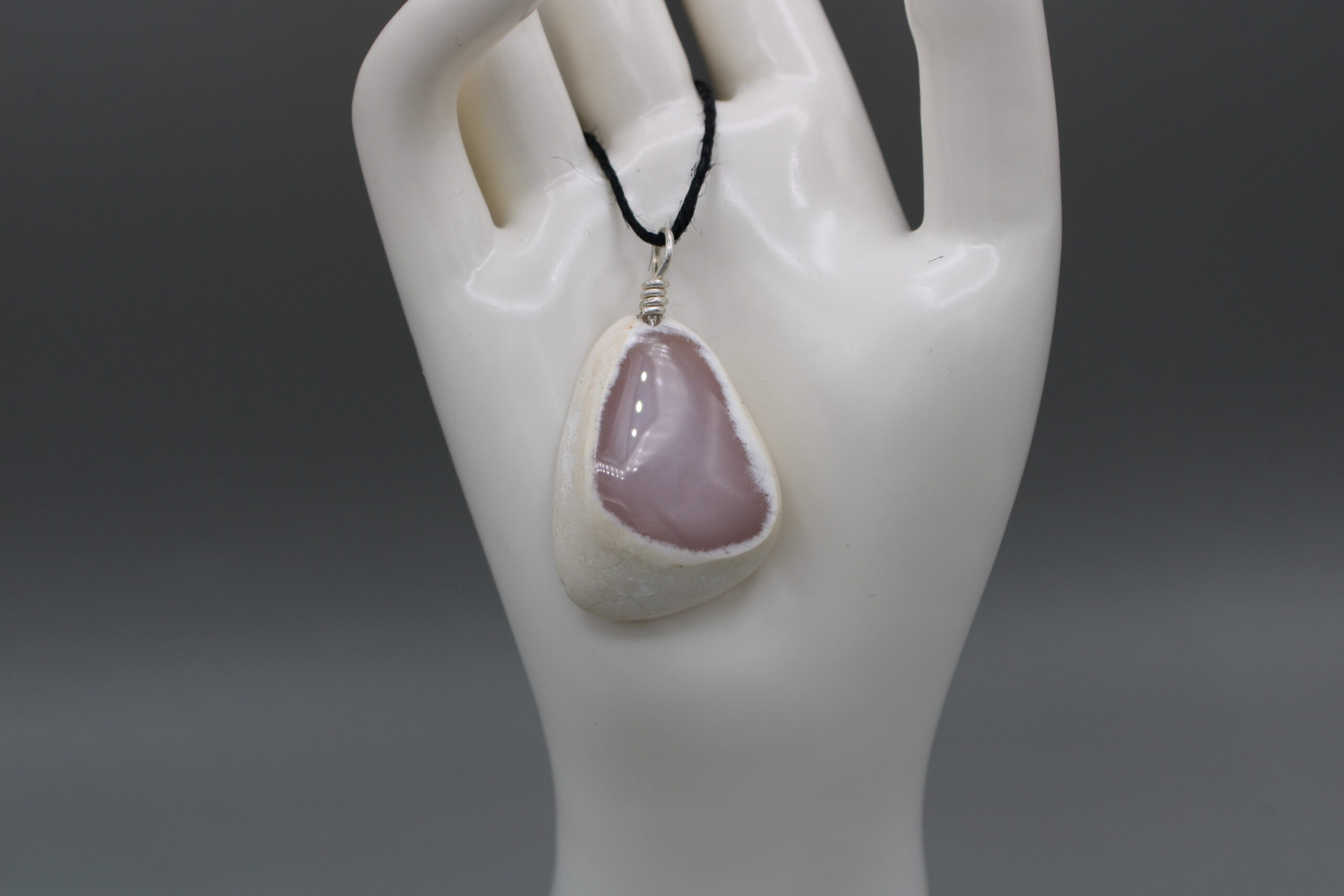 Pink Chalcedony pendant with a Sterling silver eyelet.