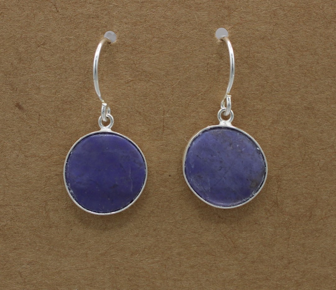 Turkiyenite (Lavender Jade) circle, Set in a Sterling Silver (.925) Bezel, with Sterling Silver hook and clear plastic backing.